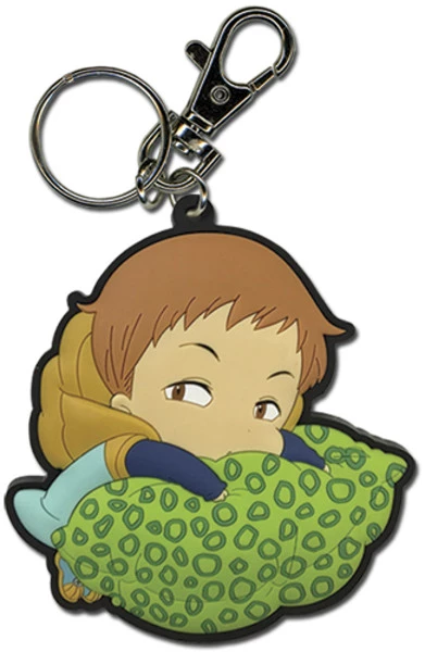 King from The Seven Deadly Sins has a suspicious look on his face, but he won’t float away with your keys. He’ll hang around to protect them on this PVC keychain along with his precious pillow!