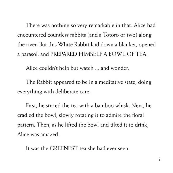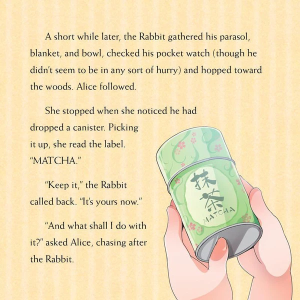 “Alice in Matchaland” is not just pure fairy tale, though. Sprinkled throughout the pages are more than a dozen real recipes for readers who wish to make for themselves the same matcha-based sweets that Alice herself enjoys.