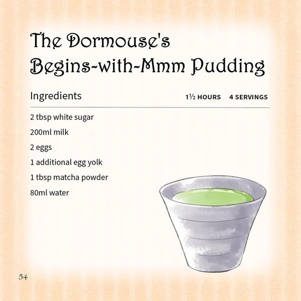 Alice in Matchaland: A Japanese Green Tea Cookbook and Adventure was written by Mosoko Miyatsuki and includes dozens of full-color illustrations and features 14 original recipes for matcha-flavored treats.