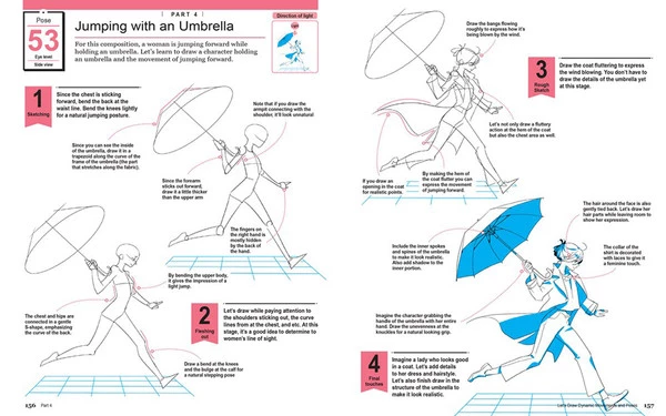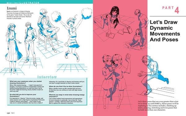 Draw Amazing Manga Characters: A Drawing Exercise Book for Beginners features detailed lessons on 81 different poses with over 850 illustrations by Akariko, Izumi, Ojyou, Onodo To-ya, and Karasuba Ame.